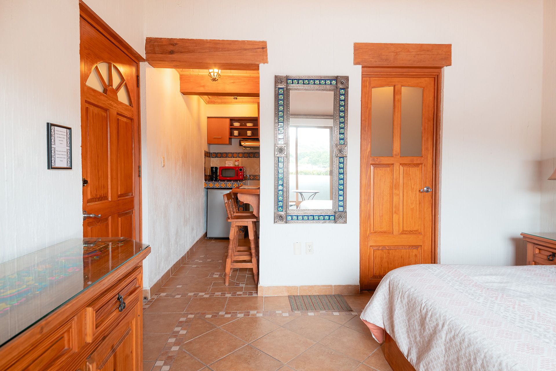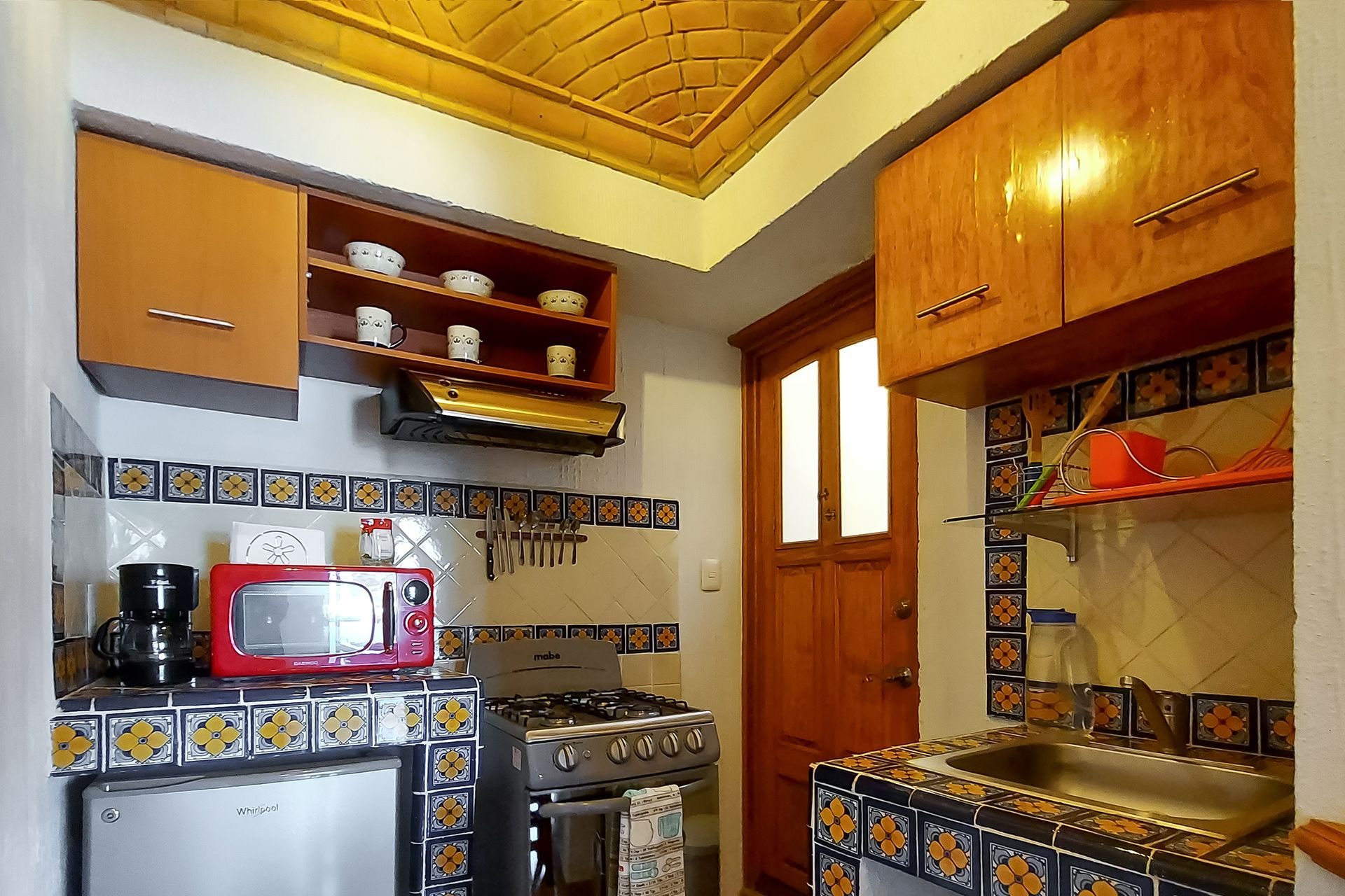 Hermosa habitación de estilo colonial con acabados y detalles modernos, ubicada en la planta baja de la Casita, cuenta con cocineta y balcón con vista a la ciudad y al cerro de la Bufa.